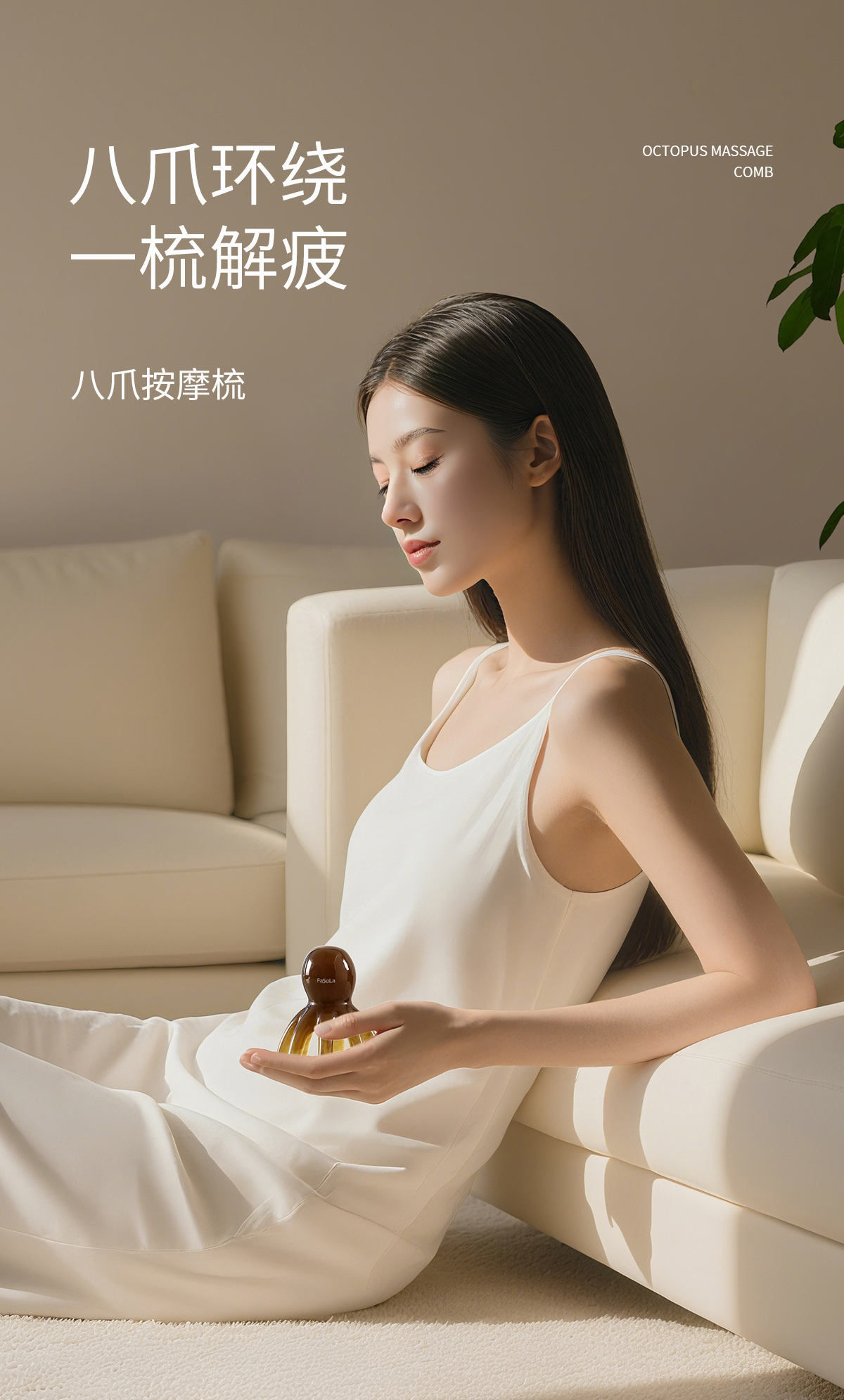 章鱼按摩梳头部经络按摩器头皮穴位头疗梳八爪鱼便携刮痧梳