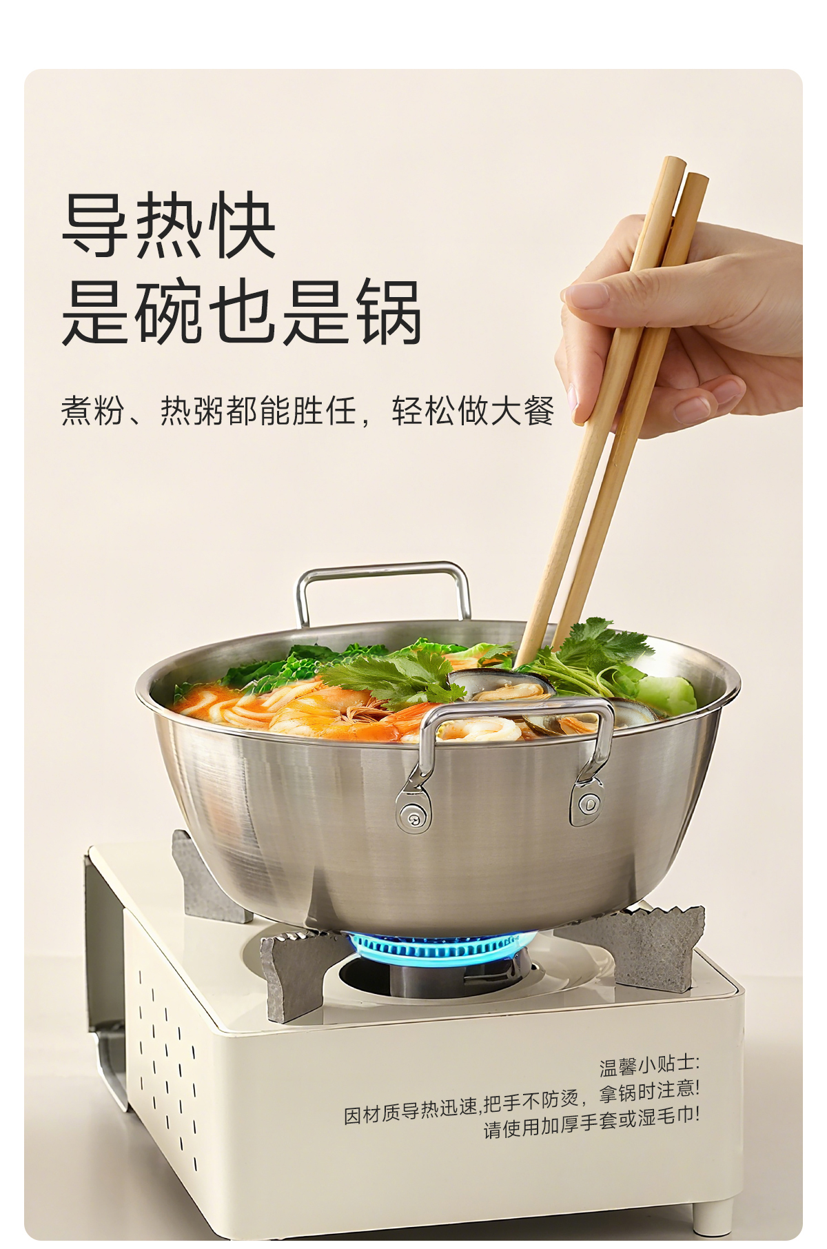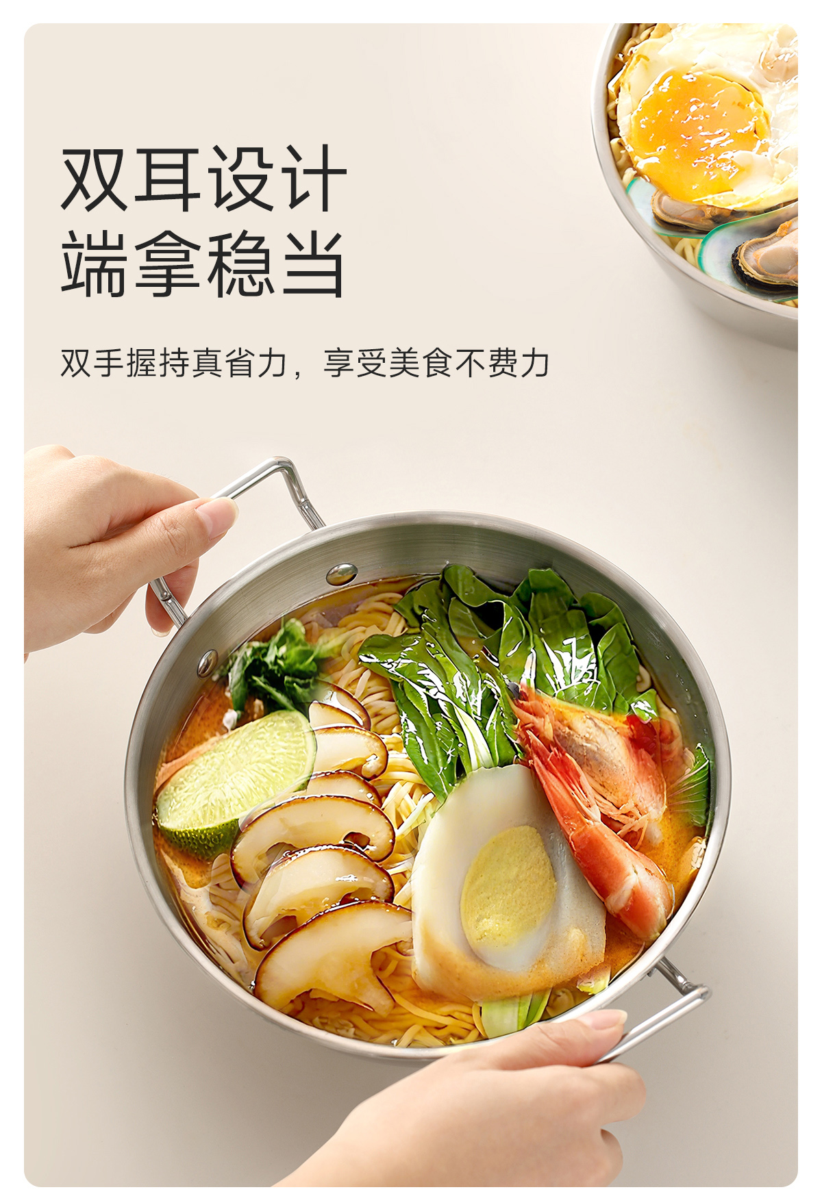 多功能汤面碗家用新款高颜值大碗不锈钢大号双耳泡面碗