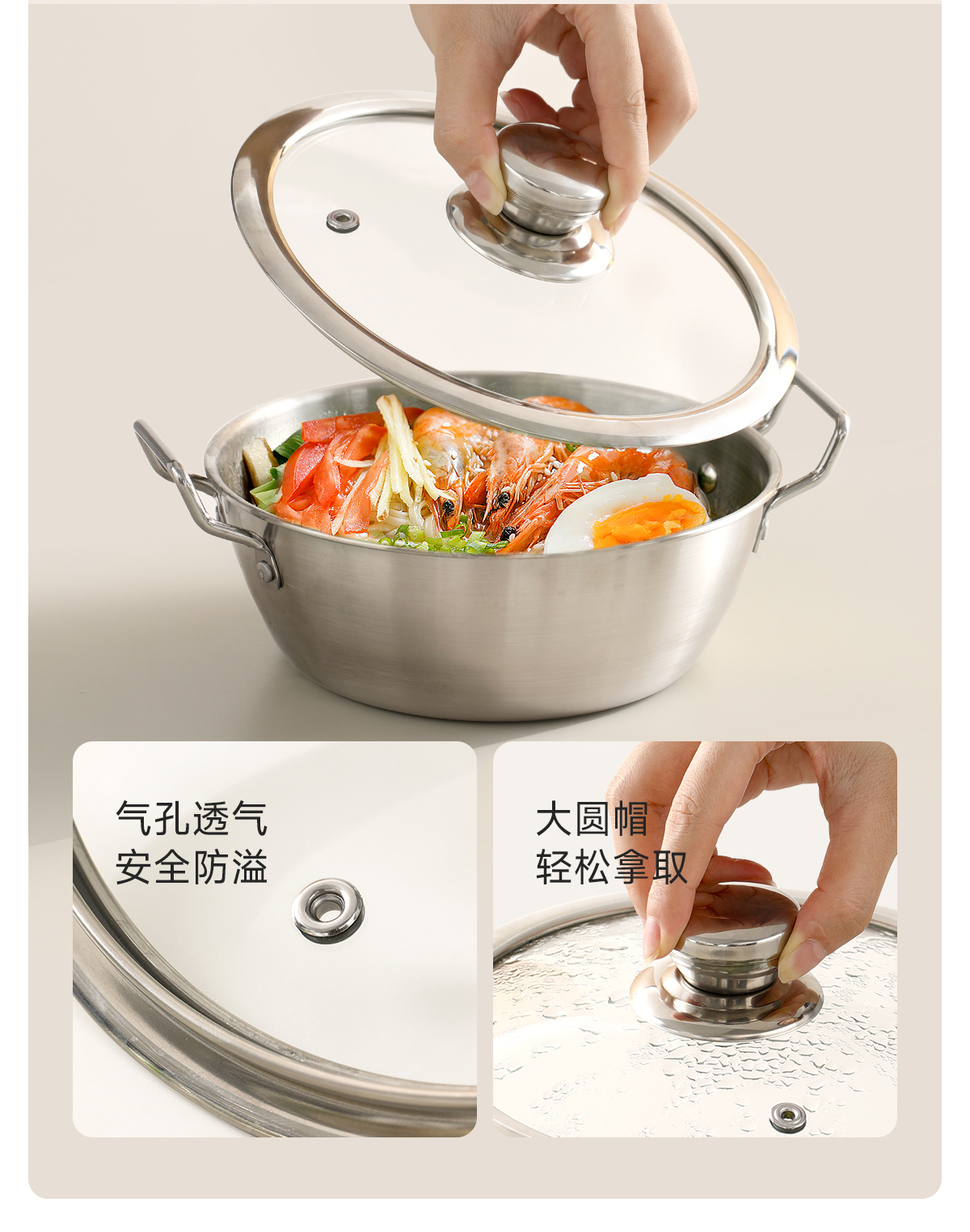 主体304(不锈钢06Cr19Ni10)提手耳朵201(不锈钢1Cr17Mn6Ni5N)