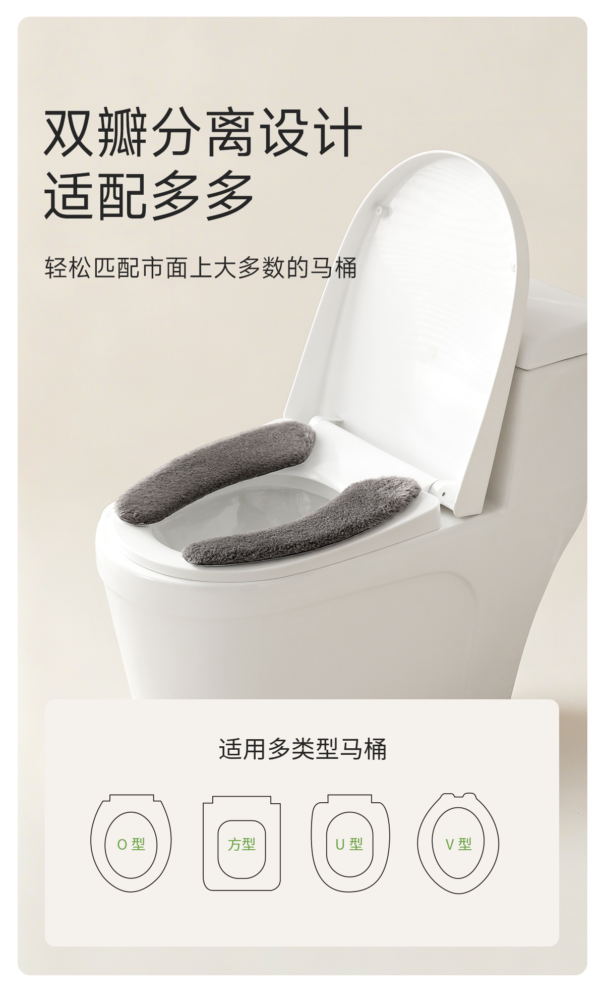 马桶坐垫冬季专用含羊毛坐便圈家用马桶粘贴贝舒抗菌马桶垫