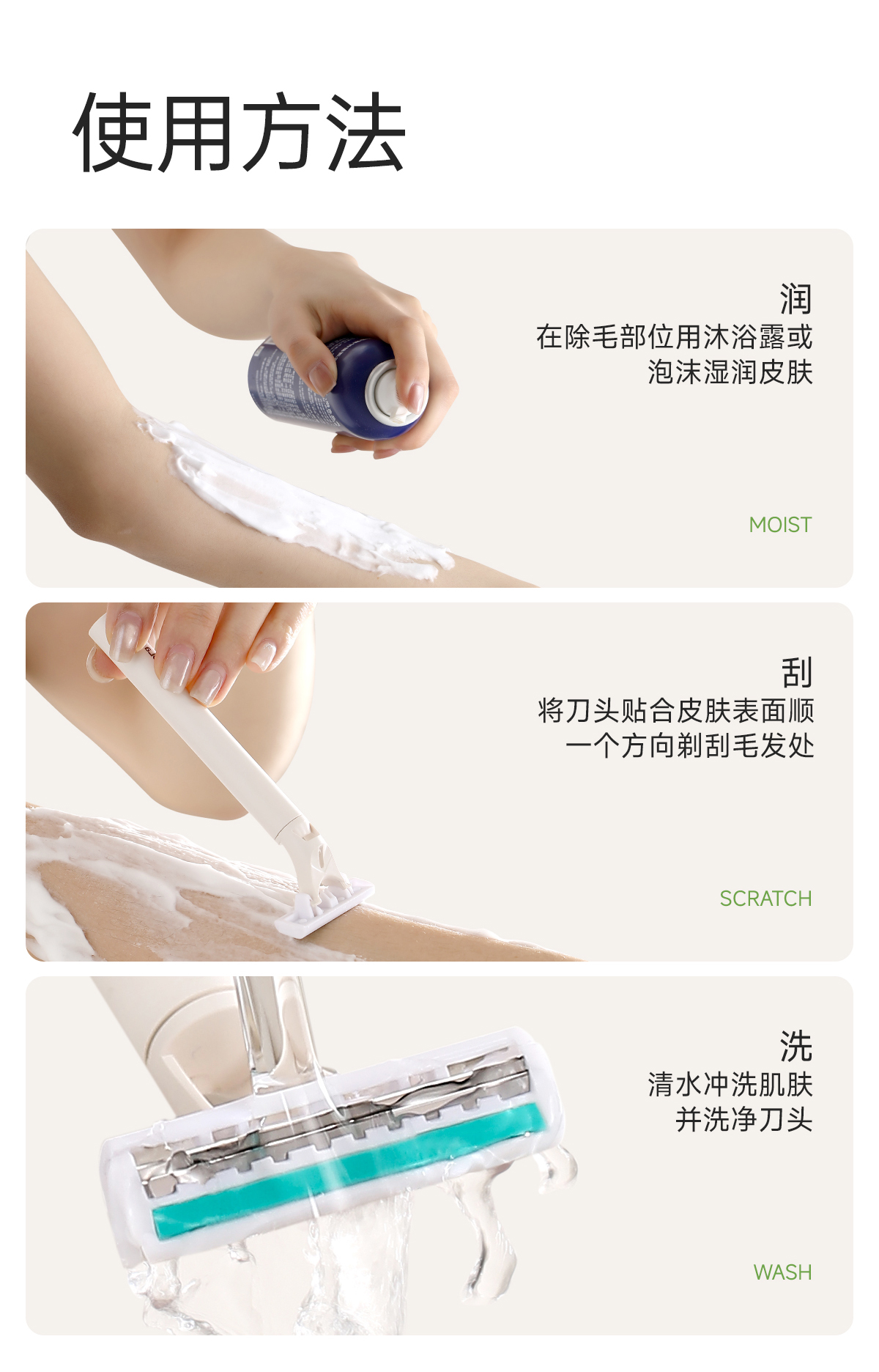 | 商品材质:手柄、连接键材质:环保PCR、刀片(420不锈钢2层刀片,单层厚度约0.11mm)、保护盖:PC、润滑条(聚乙二醇、聚苯乙烯、硬脂酸、甘油、羧甲基纤维素、碳酸钙、芦芸精华) |