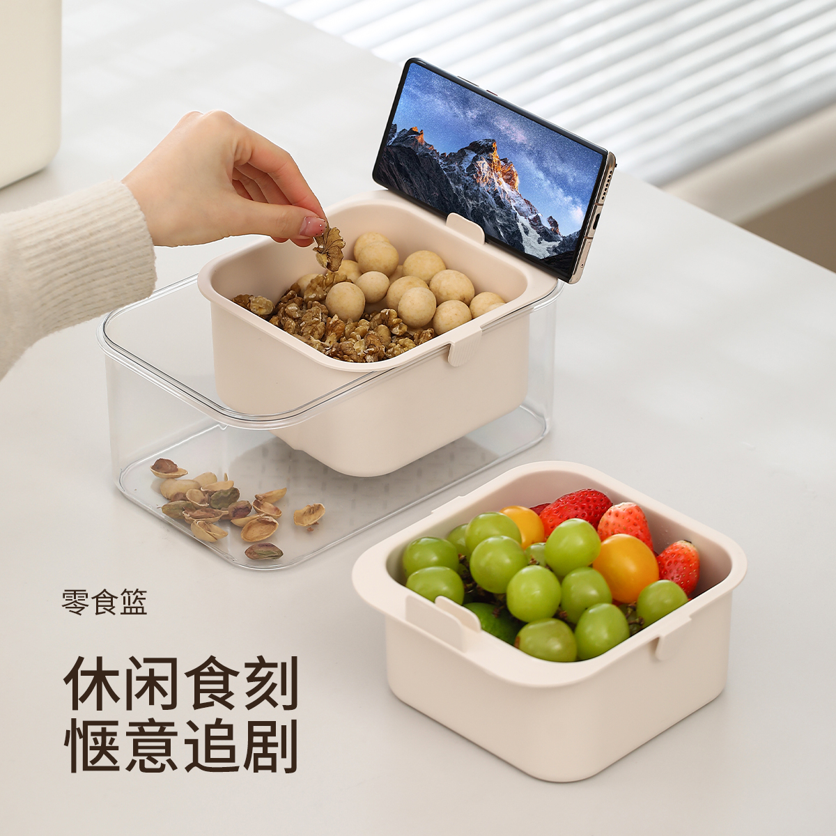 双层加厚可伸缩果蔬沥水篮家用果盘懒人追剧干果糖果收纳零食篮