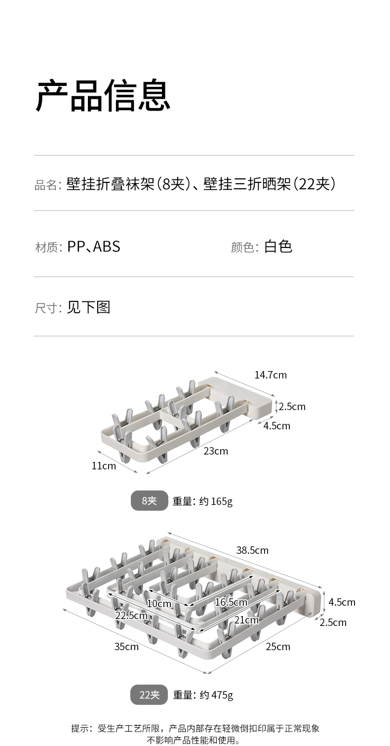 壁挂折叠晾晒架室内晒衣架阳台挂衣杆毛巾架免打孔多夹子晾衣神器 22夹