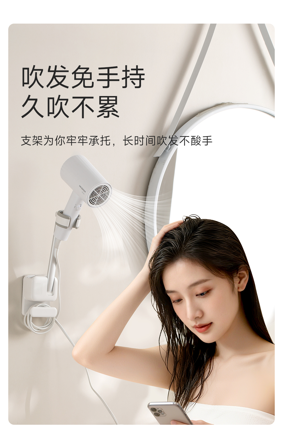 免打孔吹风机收纳架子电吹风置物架懒人壁挂式吹风机支架