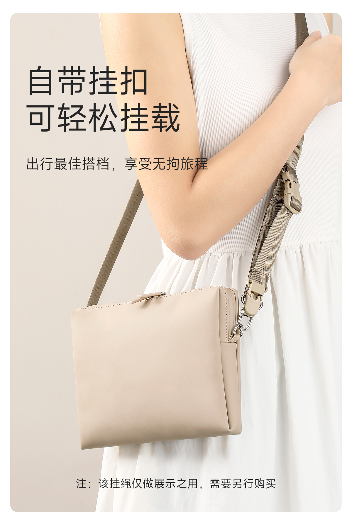 外层皮革(1.3mm平纹皮革)、里层尼龙(平方克重130g)、拉链(5#TPU)、D环锌合金(表面电白工艺)