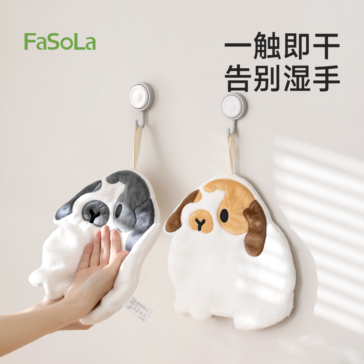 挂式吸水速干卡通可爱双面珊瑚绒小毛巾卫生间抹手布绒犬擦手巾