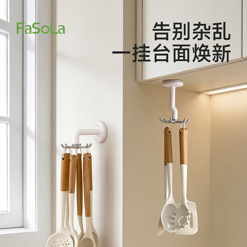 吸盘厨房挂钩六爪旋转免打孔壁挂勺子铲子厨具收纳挂架巧旋六爪挂钩