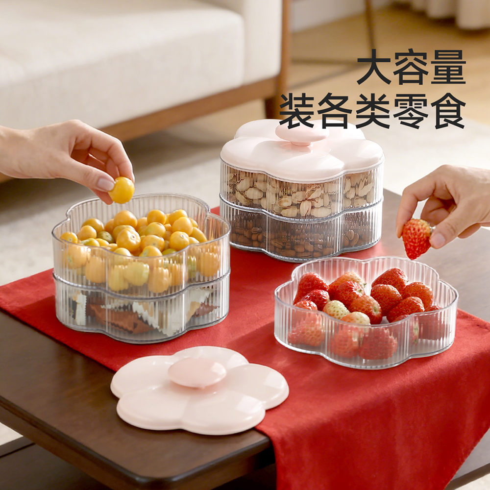 玻璃果盘客厅茶几家用干果收纳盒精致零食盘糖果盒花漾收纳盒