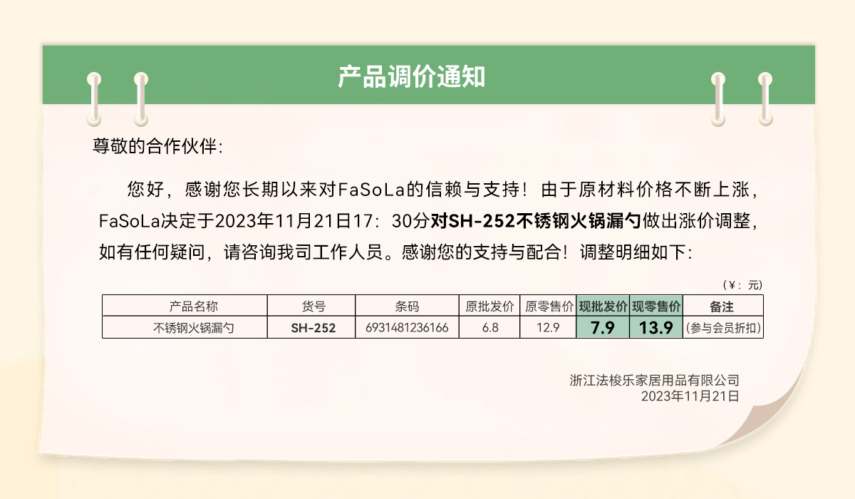 SH-252不锈钢火锅漏勺涨价通知