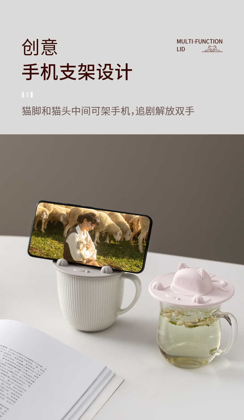 可爱硅胶猫形杯盖杯防漏盖子耐高温环保防尘通用水杯盖子一盖多用