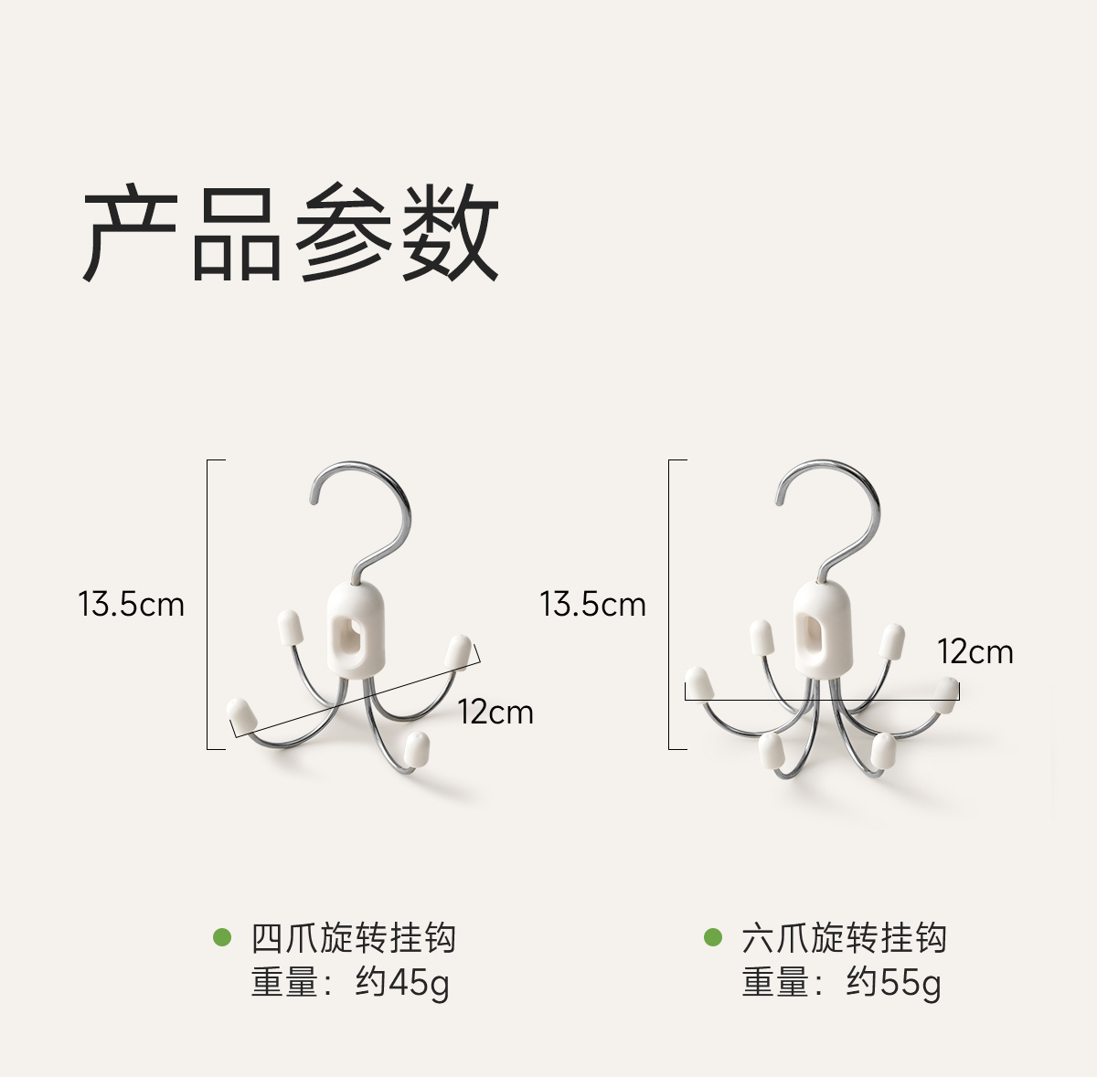 挂钩衣柜包包帽子丝巾挂包架吊钩多功能六爪旋转挂钩