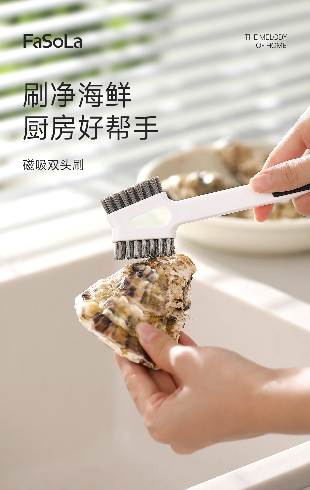 海鲜磁吸双头清洁刷厨房多功能龙虾鲍鱼螃蟹生蚝可悬挂刷子