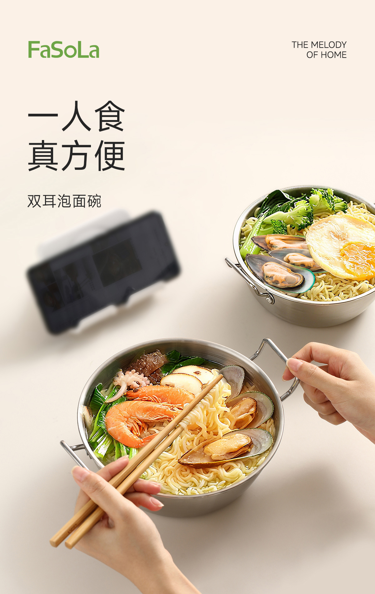 多功能汤面碗家用新款高颜值大碗不锈钢大号双耳泡面碗