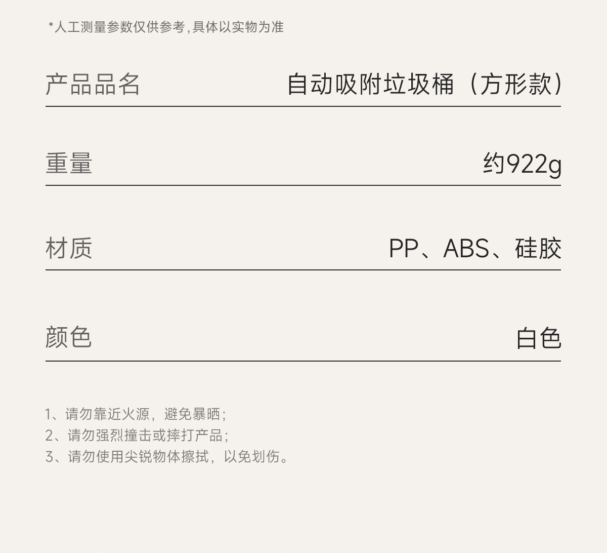 垃圾桶家用带盖厨房自动铺袋大容量高档自动吸附垃圾桶(方形款)