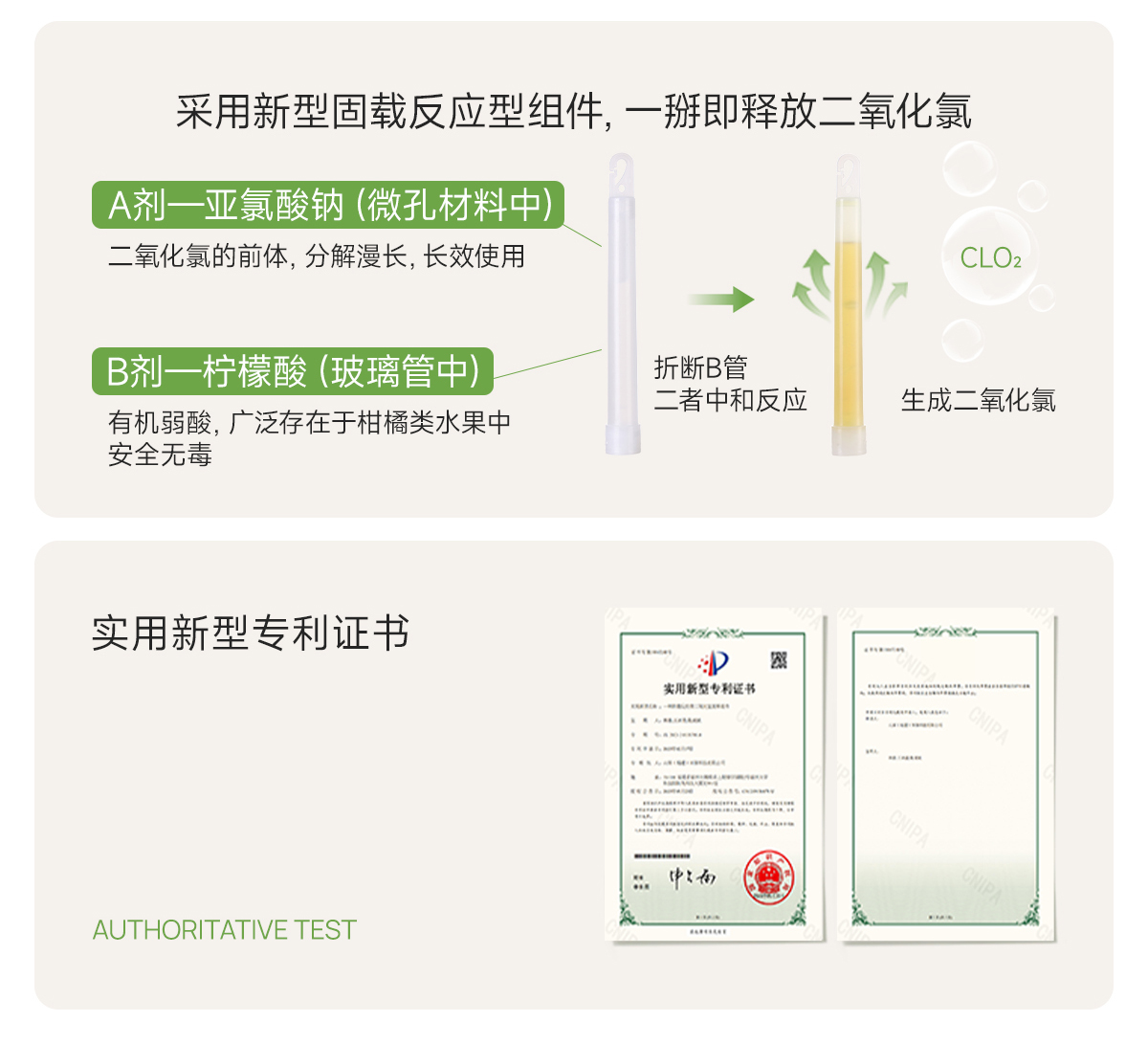亚氯酸钠、柠檬酸,内腔-中性硼硅酸盐玻璃,外腔-PE、PP