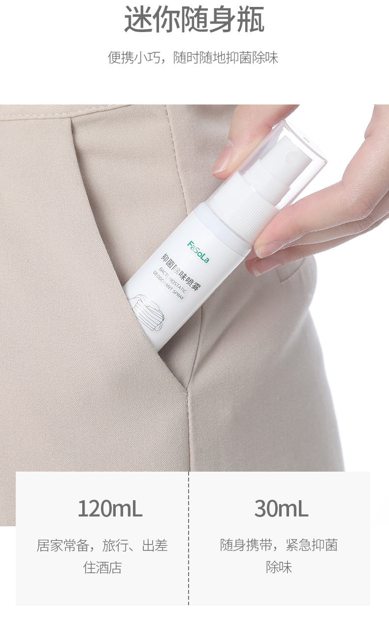 便携除菌对金黄色葡萄球菌、大肠杆菌、白色念珠菌的抑菌率>99%除臭因子分解异味源居家常备,旅行出差住酒店
