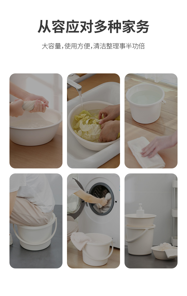 三合一家用塑料水桶脸盆套装带盖加厚手提储水盆桶大容量学生宿舍洗衣盆