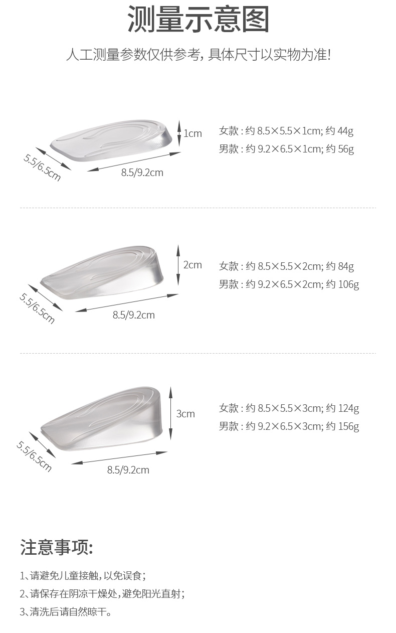 隐形增高垫鞋垫硅胶马丁靴女半垫舒适不累脚鞋垫男内增高神器