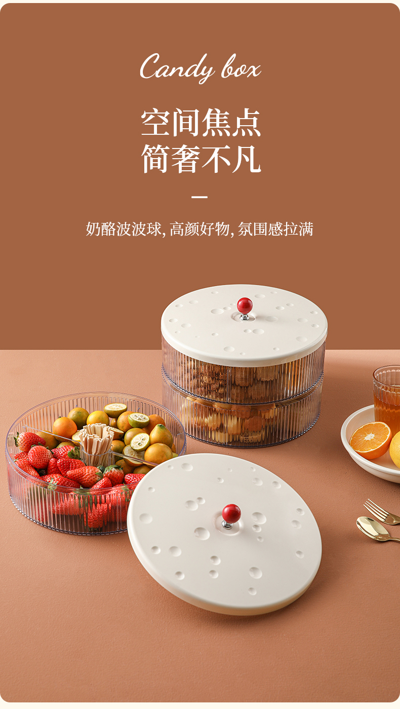 创意奶酪干果盒新款家用客厅茶几瓜子零食收纳盒分格波波球糖果盒