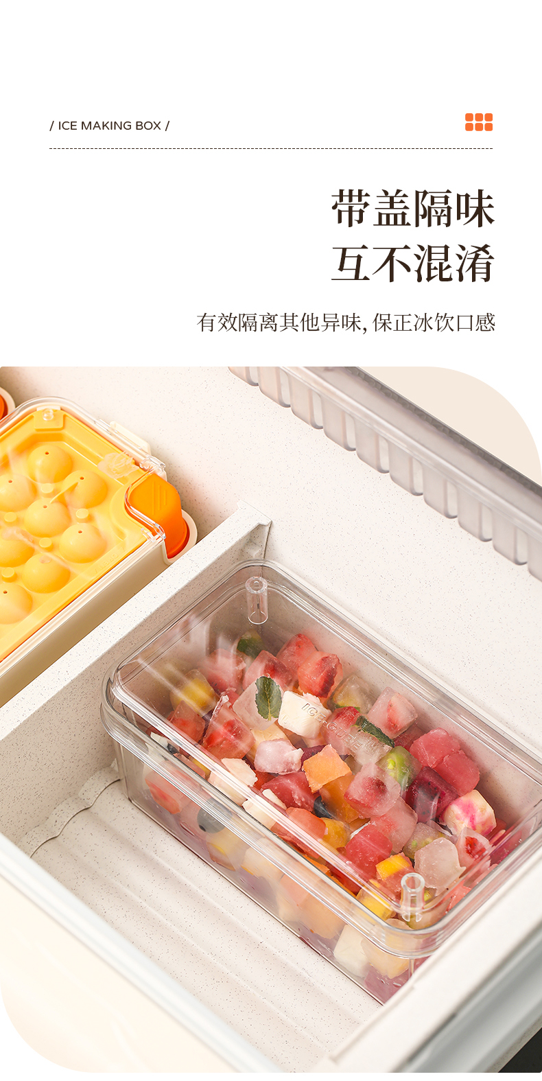 冰块模具家用食品级按压冰格冰箱制冰器储冰盒带盖冻冰块神器