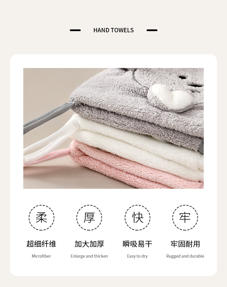 擦手巾挂式雪尼尔厨房加厚吸水速干毛巾卫生间卡通可爱抹布不掉毛