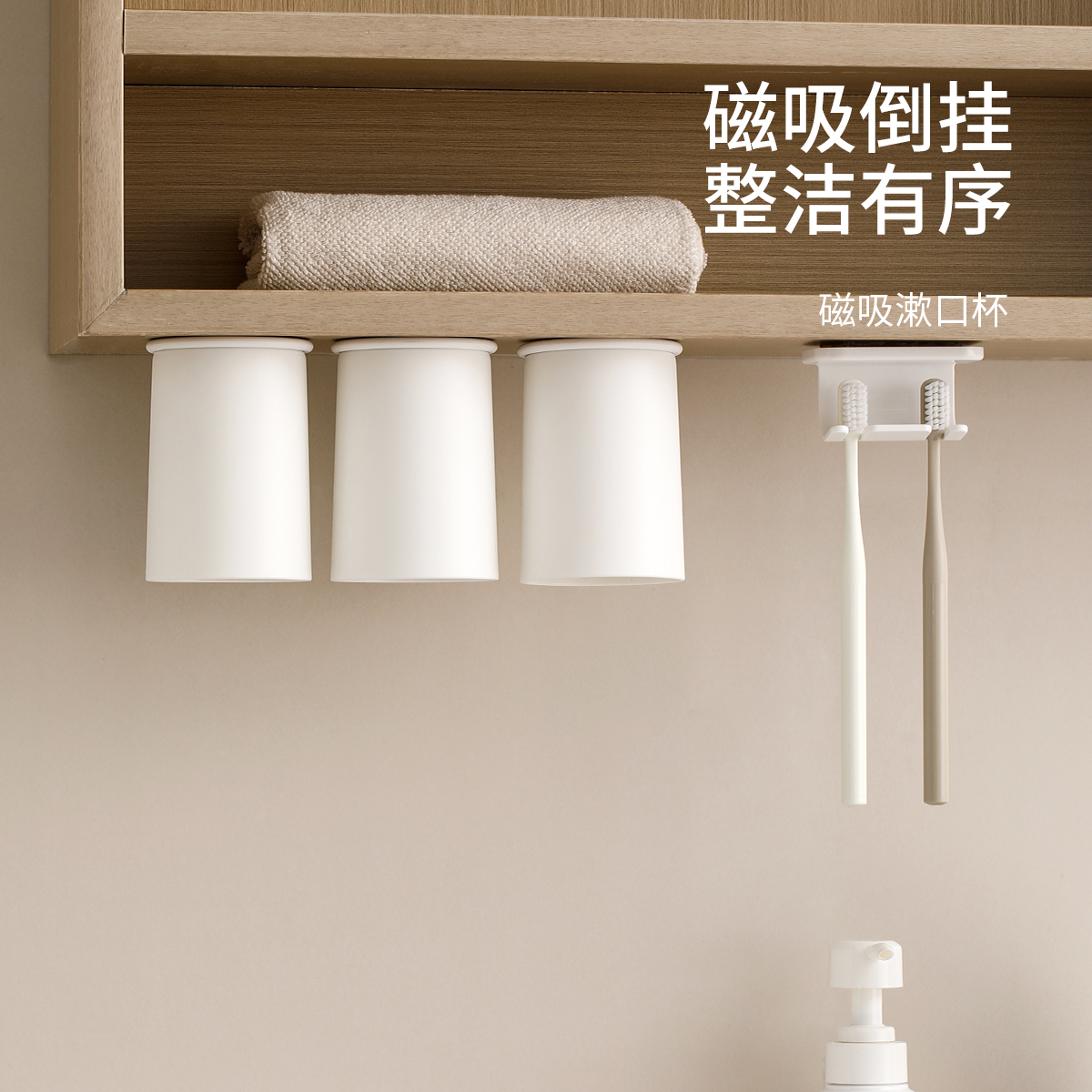 磁吸式漱口杯洗漱台倒扣沥水牙刷杯壁挂式刷牙杯子挂墙牙膏牙刷架