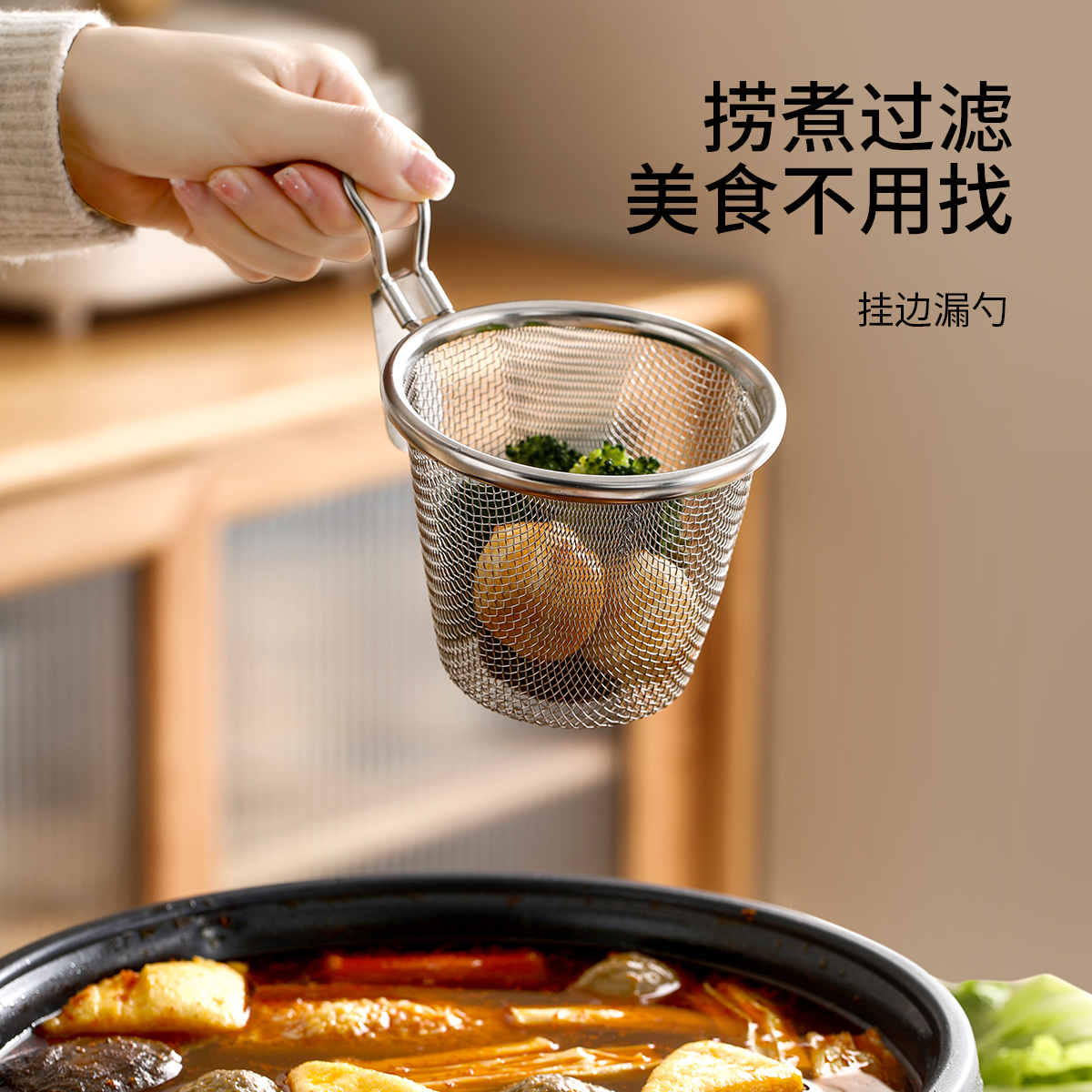 漏勺专用厨房家用挂边捞面勺漏网油炸过滤网篮304不锈钢漏筐