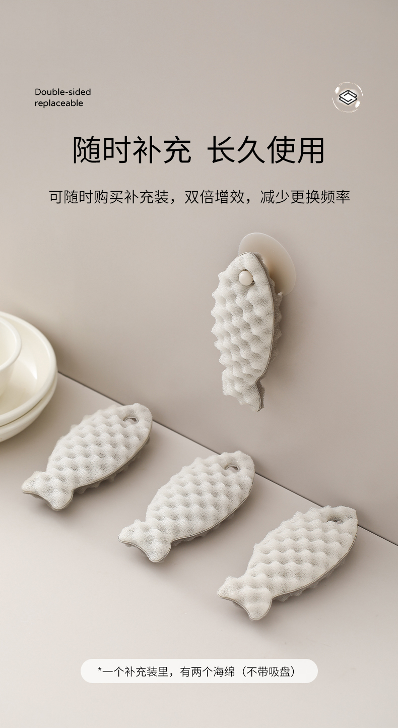 吸盘海绵擦厨房清洁双面百洁布丝瓜络抹布立体蜂窝洗碗刷