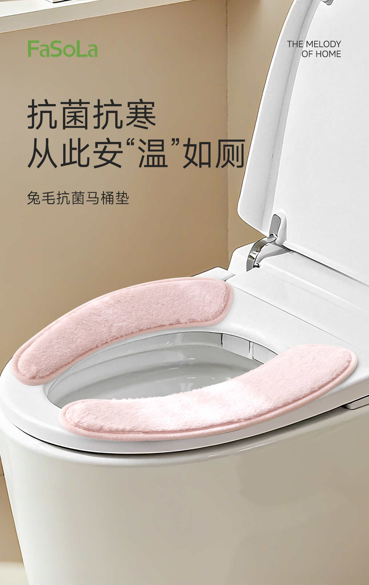 马桶坐垫冬季加厚家用毛绒坐便粘贴加绒兔毛抗菌马桶垫