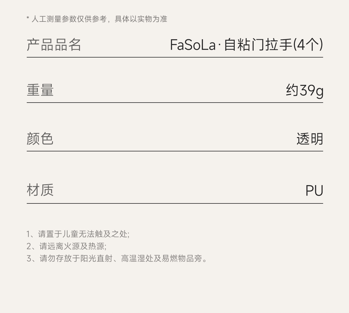 FaSoLa柜门拉手免打孔推拉门橱柜抽屉粘贴把手家用简约自粘门拉手