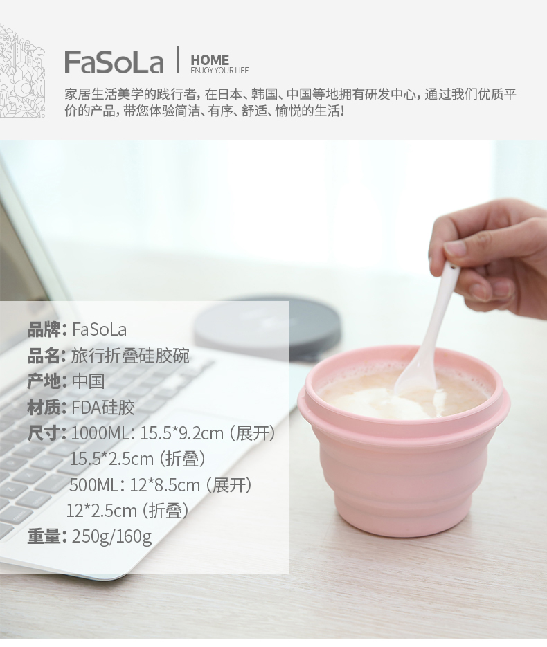 FaSoLa便携旅行硅胶折叠碗带盖泡面碗伸缩耐热户外野餐具旅游碗