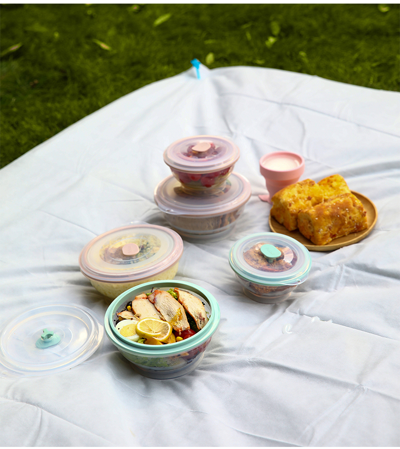 FaSoLa便携旅行硅胶折叠碗带盖泡面碗伸缩耐热户外野餐具旅游碗