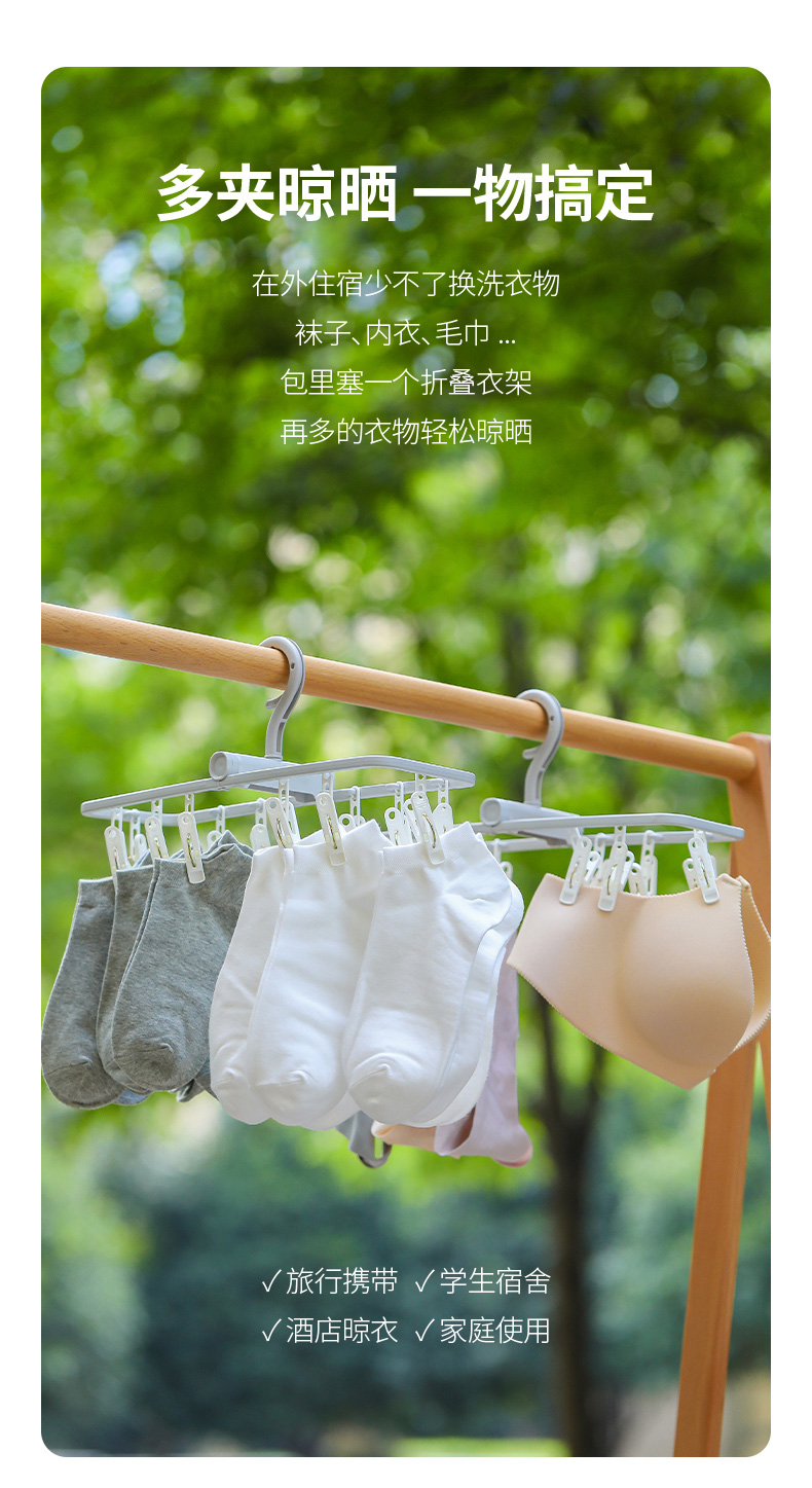 旅行晾衣架多夹子便携可折叠袜子晾晒神器婴儿宝宝内衣内裤晾袜架