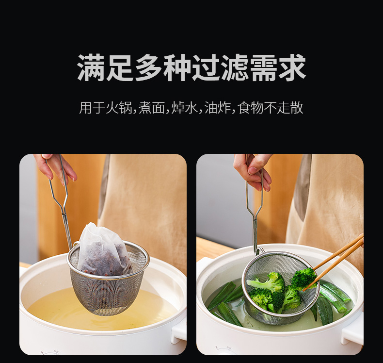 日本不锈钢漏勺涮火锅可挂式过滤网厨房捞面煮粉漏勺