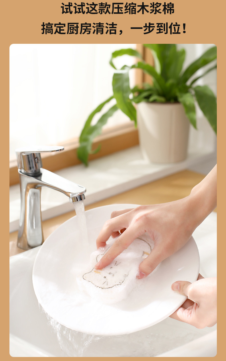 压缩洗碗木浆棉厨房吸水魔力擦洗锅海绵刷卡通耐用神器百洁布清洁