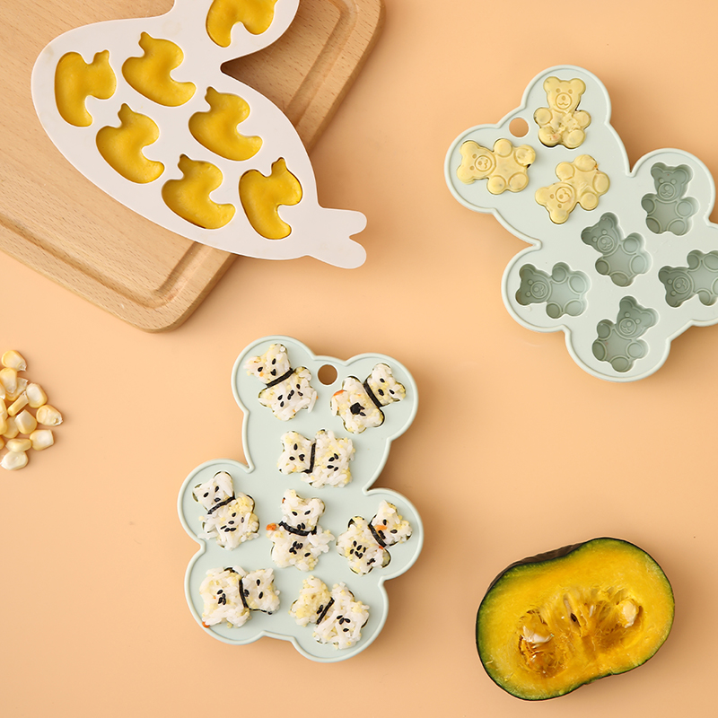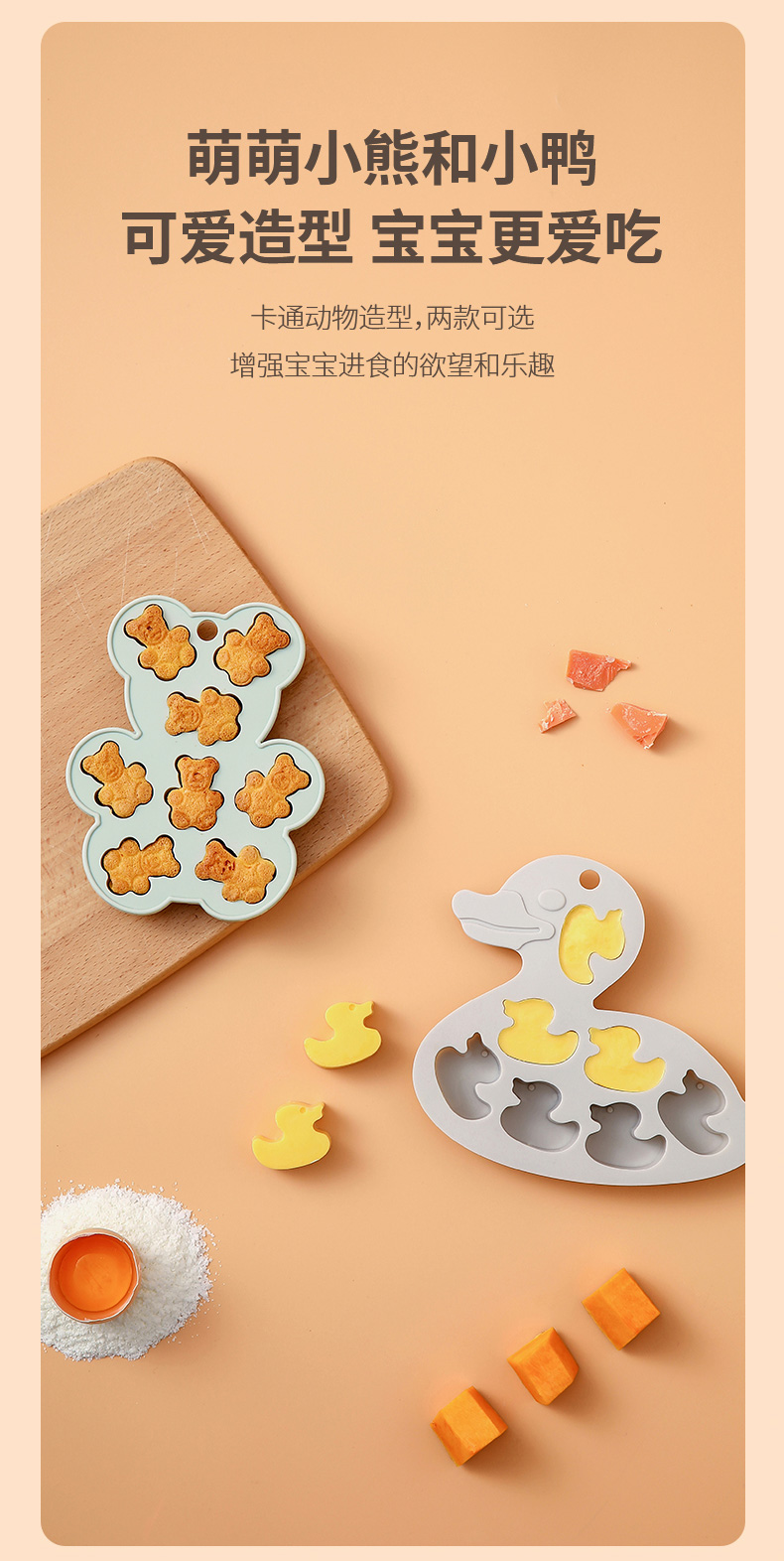 小熊小鸭硅胶模具家用宝宝辅食模具蒸糕模具耐高温婴儿硅胶辅食工具
