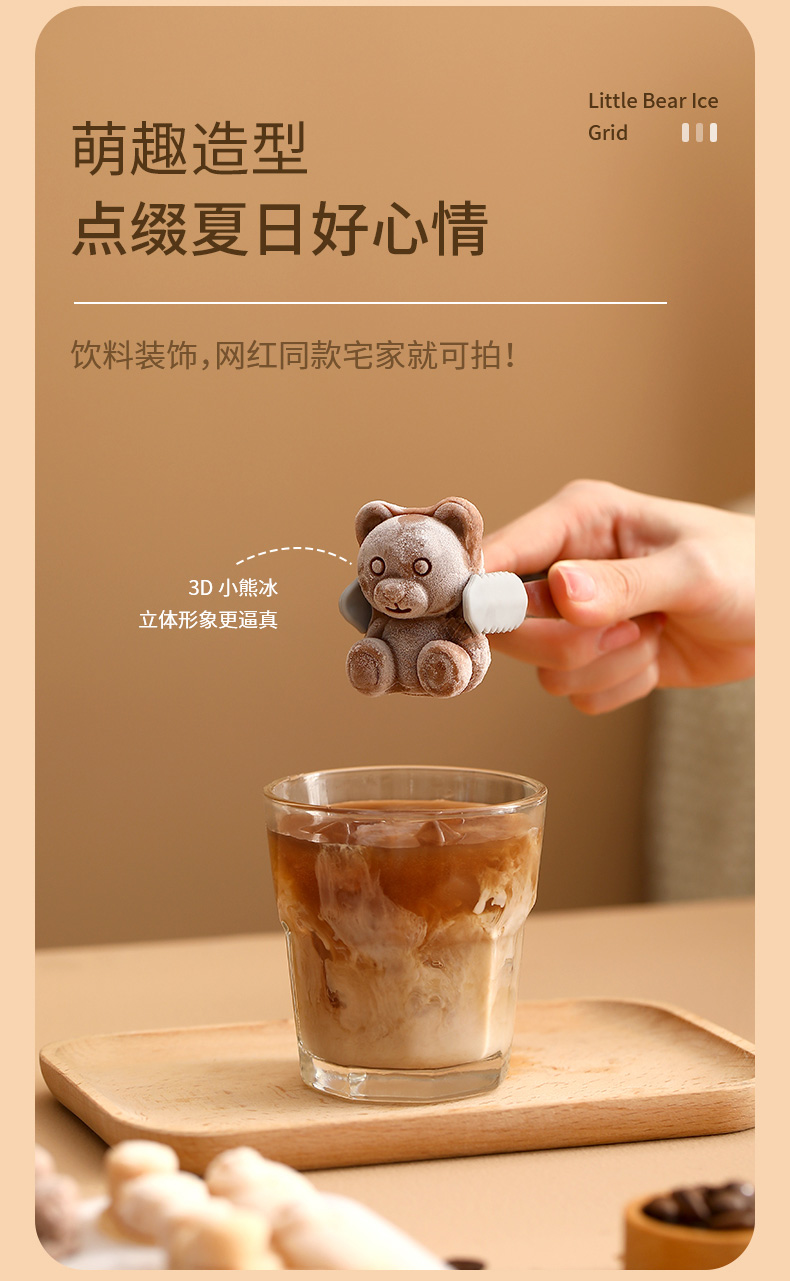 小熊冰块模具网红创意硅胶冰格咖啡奶茶冰箱自制冰块盒磨具