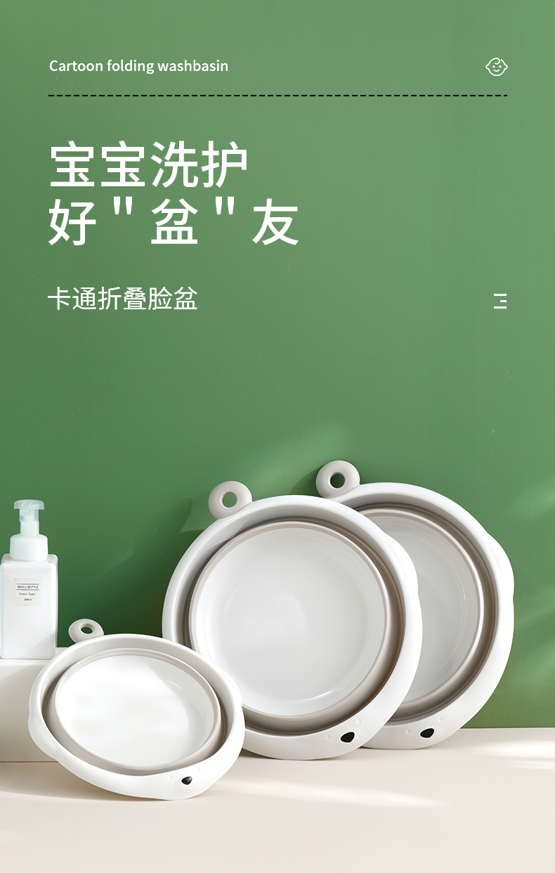 初生新生婴儿童用品可折叠洗脸盆卡通洗脸用宝宝盆子大号