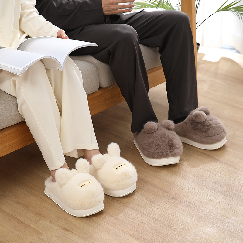棉拖鞋女秋冬季月子室内家居家防滑厚底踩屎感毛毛绒保暖情侣男士